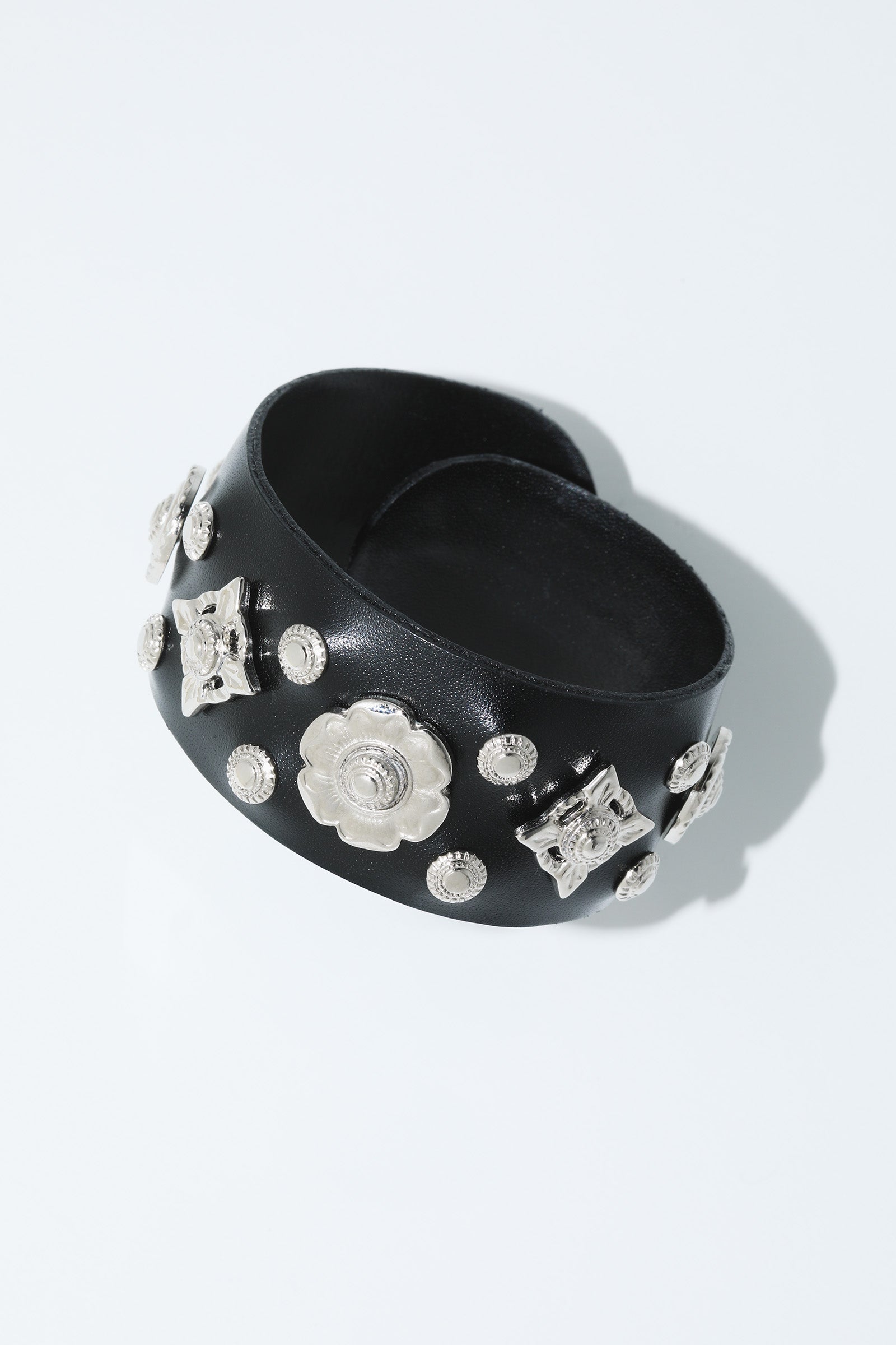 Black cowhide leather roll bangle