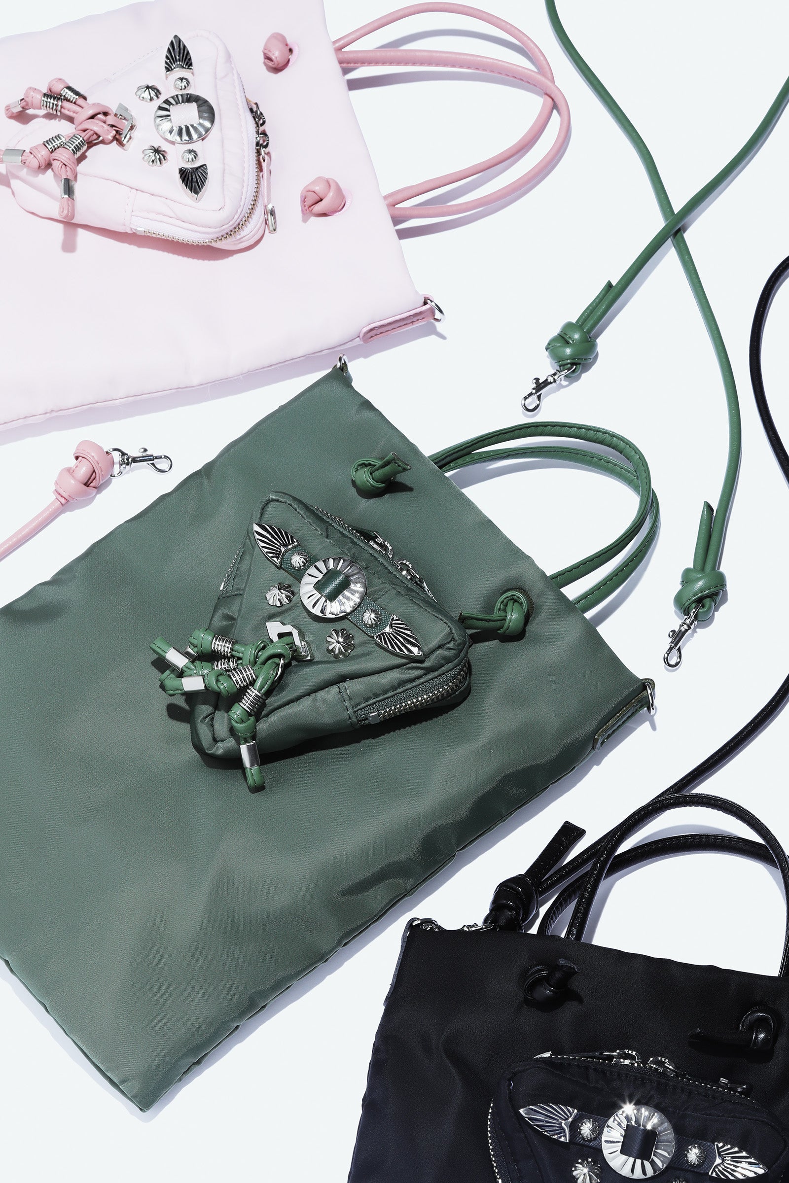 Fabric: 100%Nylon; Lining: 100%Rayon; Leather: Cowhide; Metal: Alloy