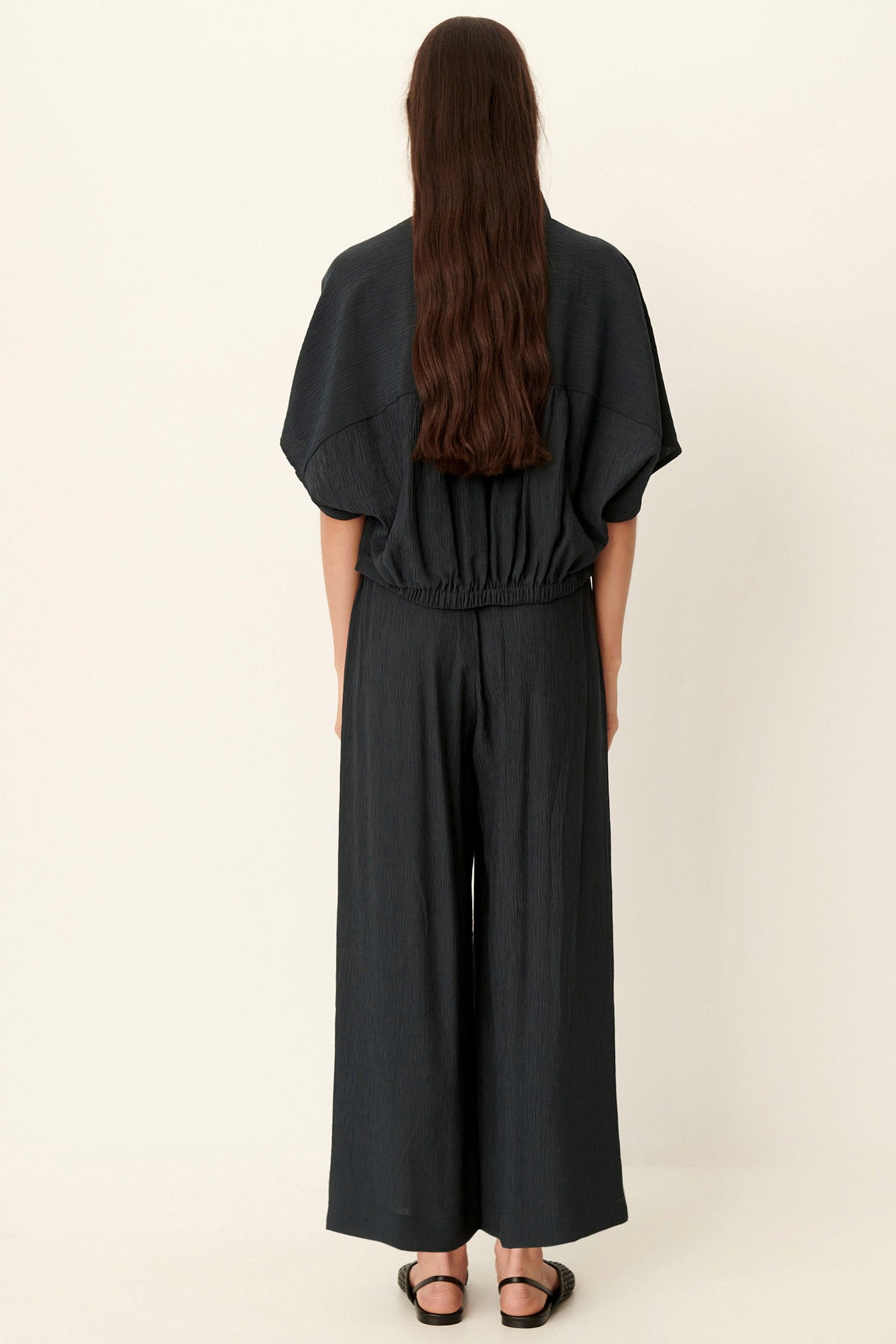 Cropped length, loose-fit
