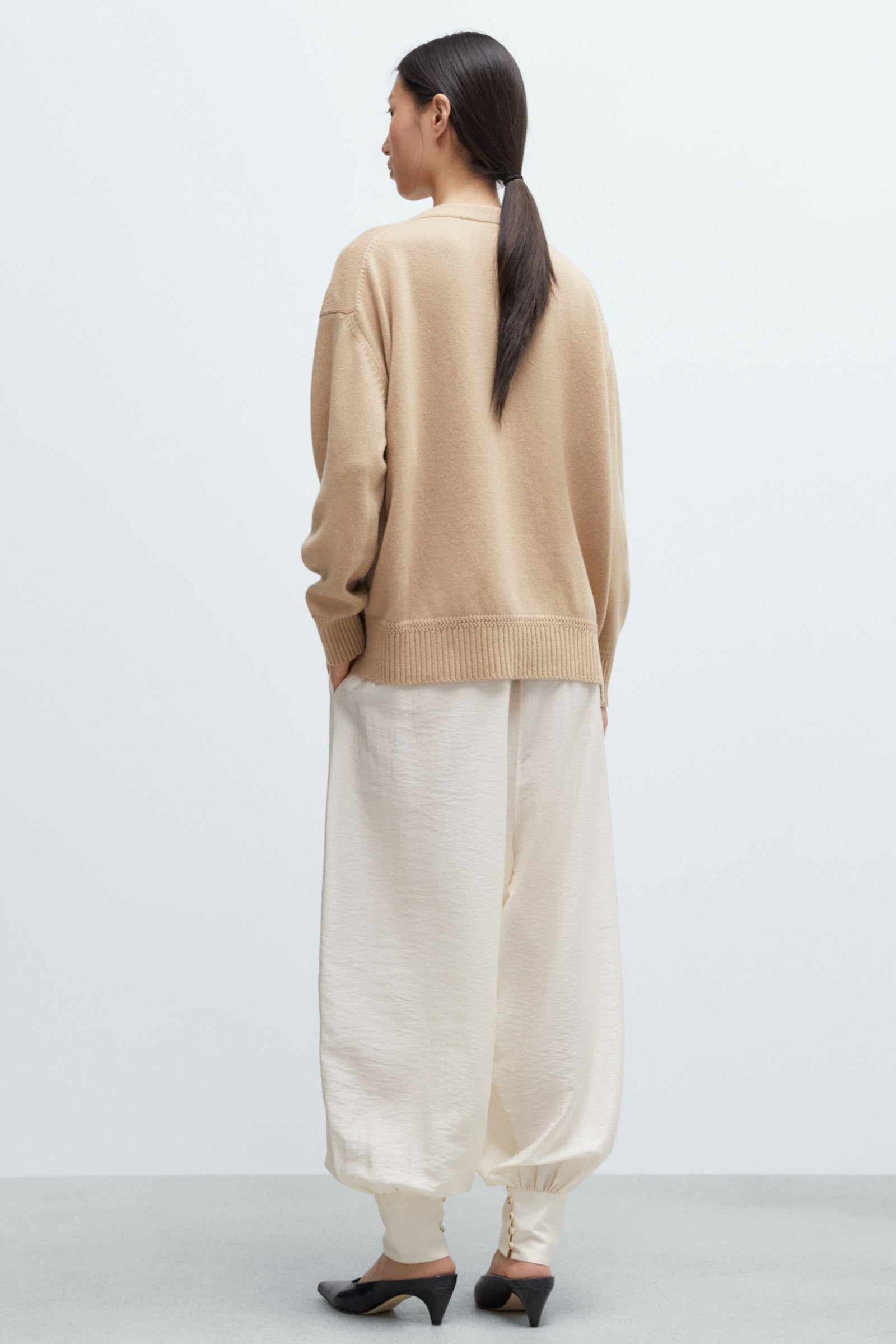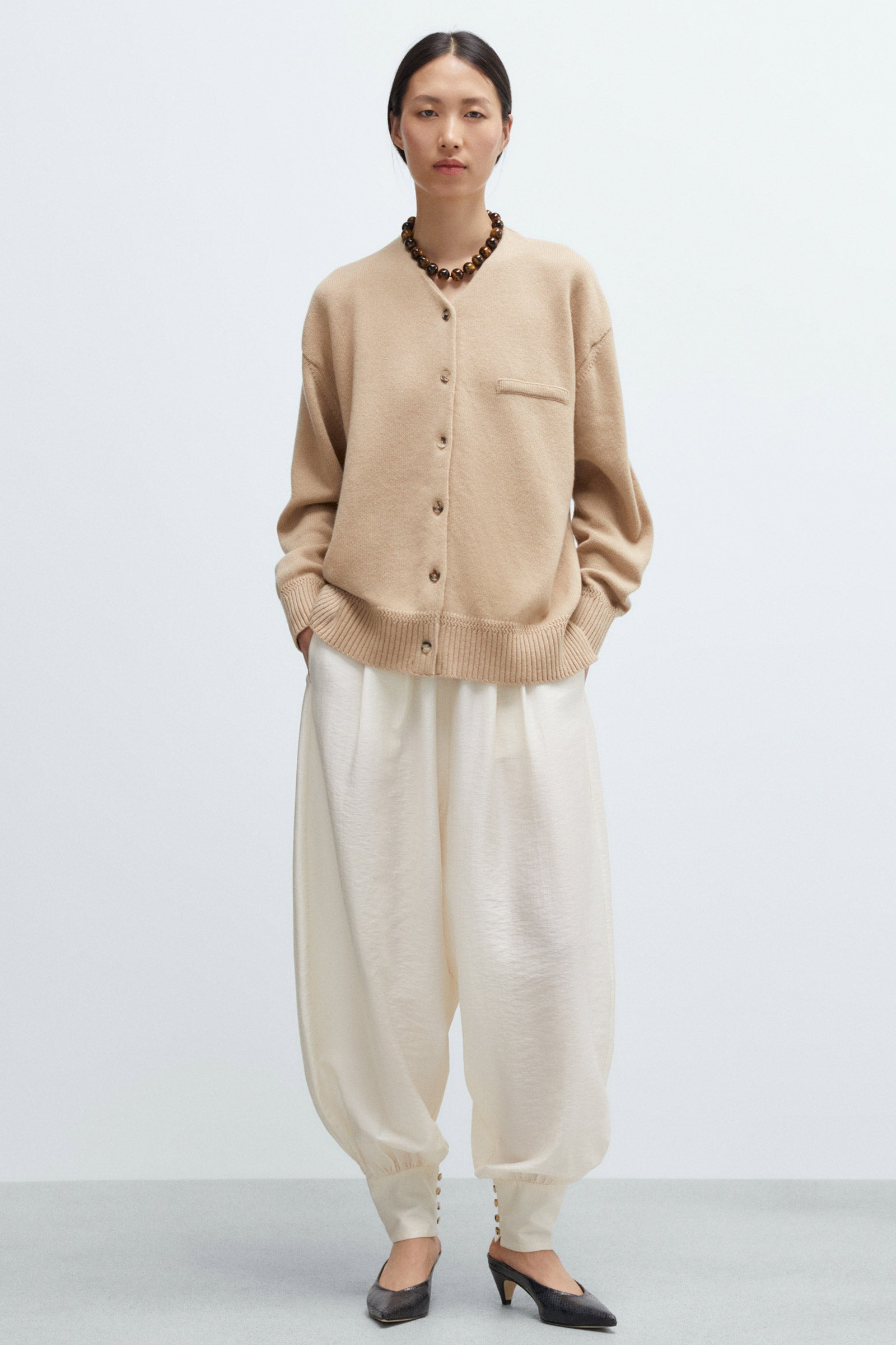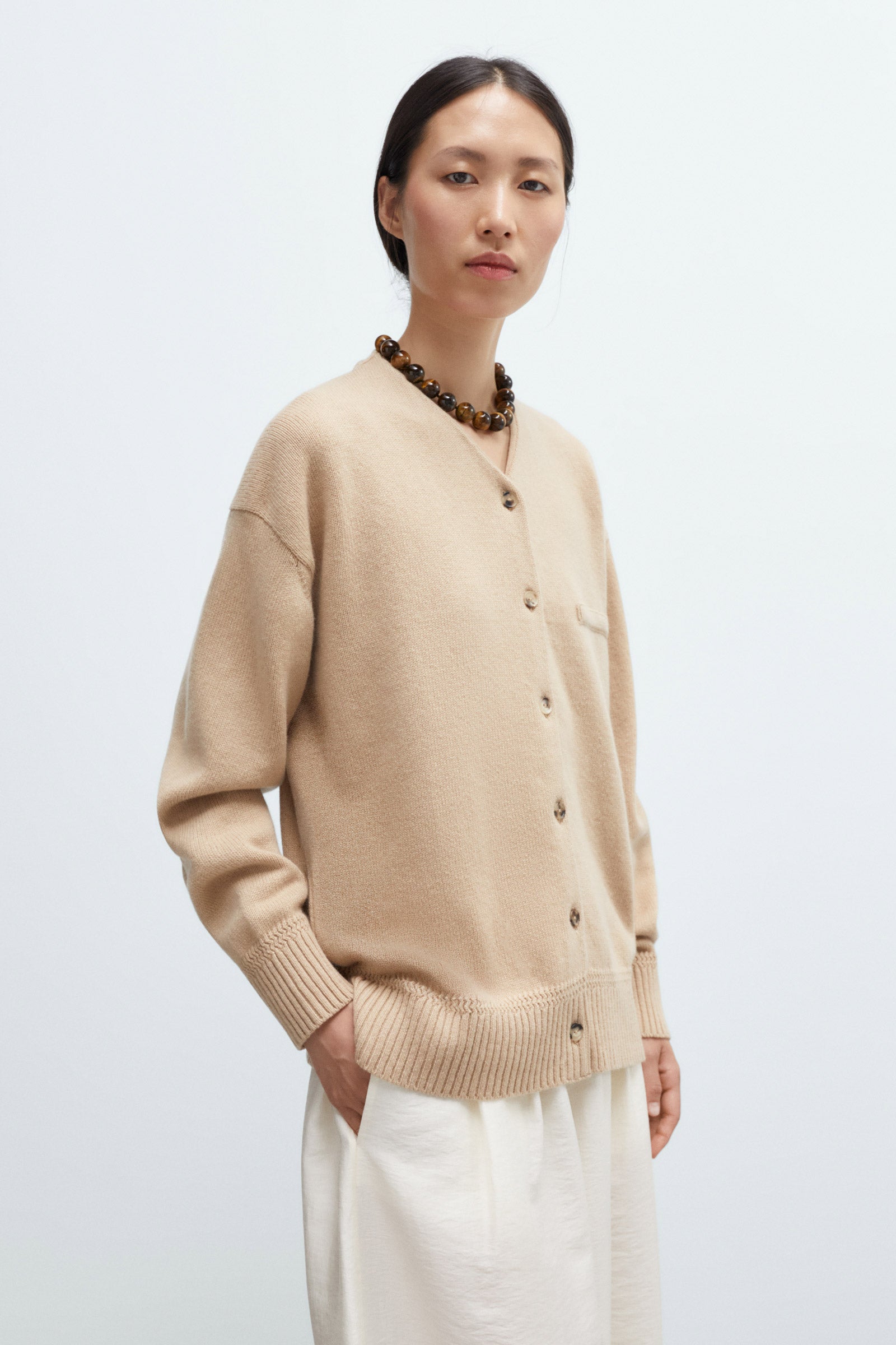 Beige ultrafine merino wool cardigan
