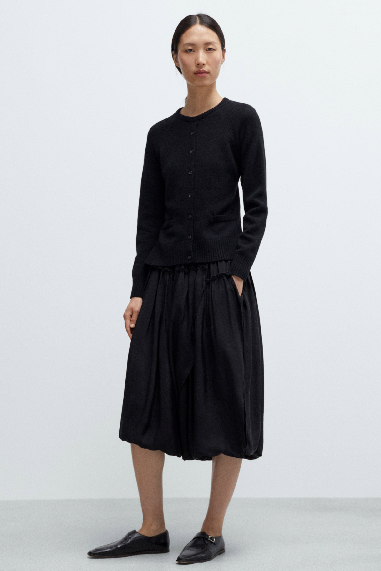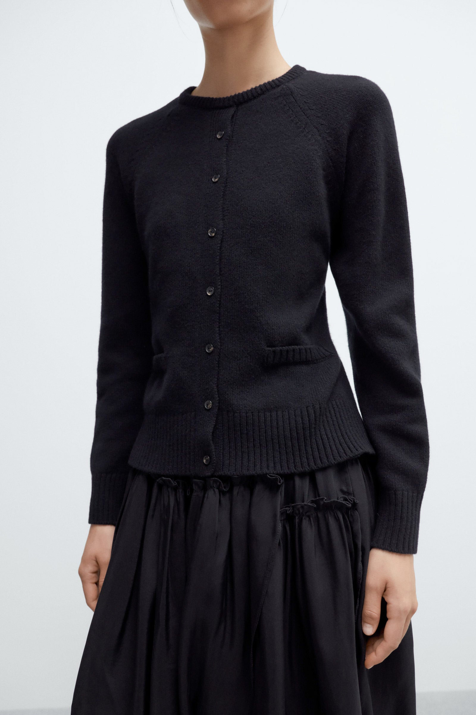 Black extrafine merino wool cardigan