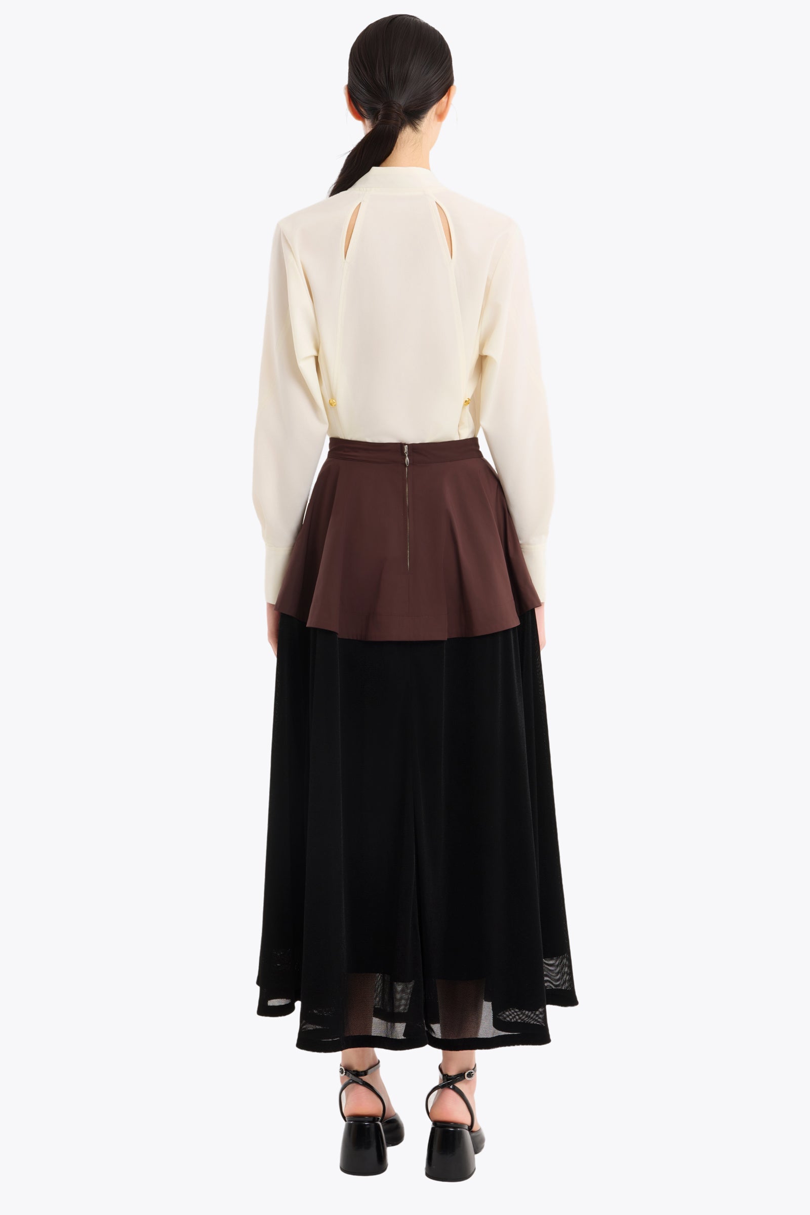 Ivory mid-weight polyester crepe shirt