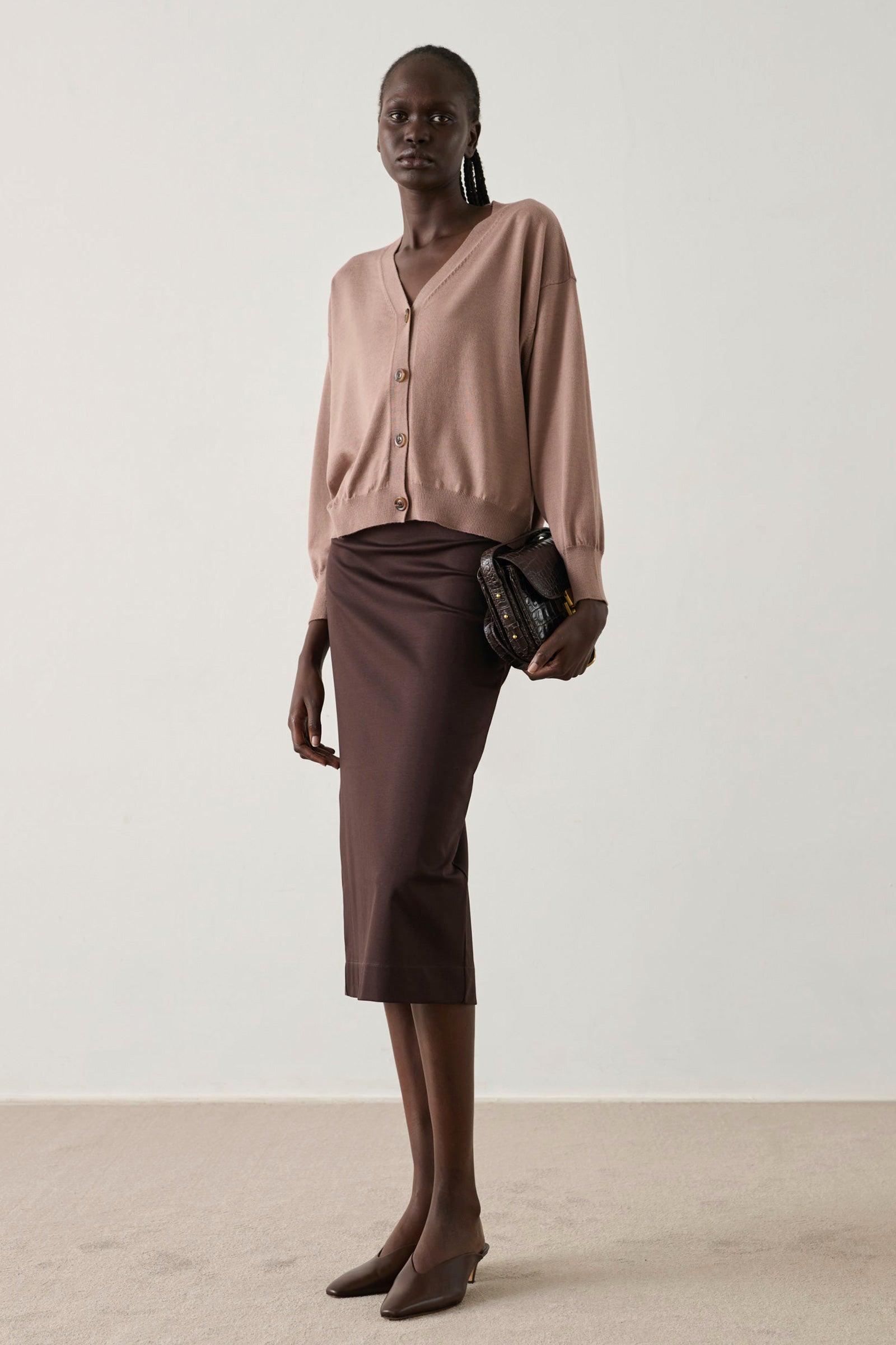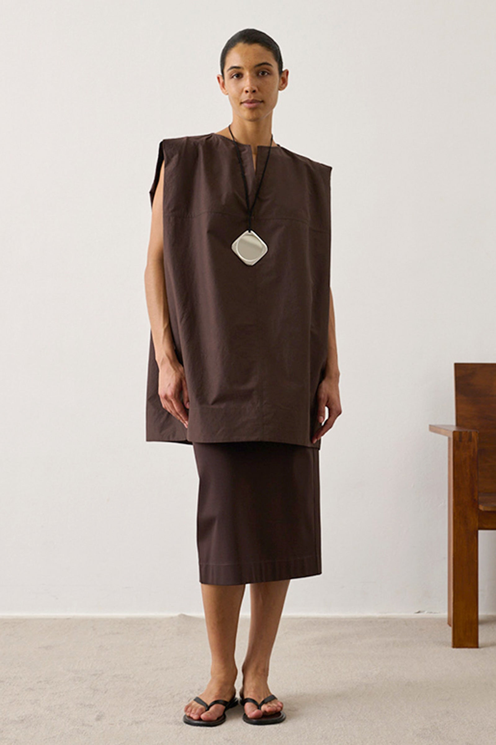 Dark brown organic cotton jersey skirt