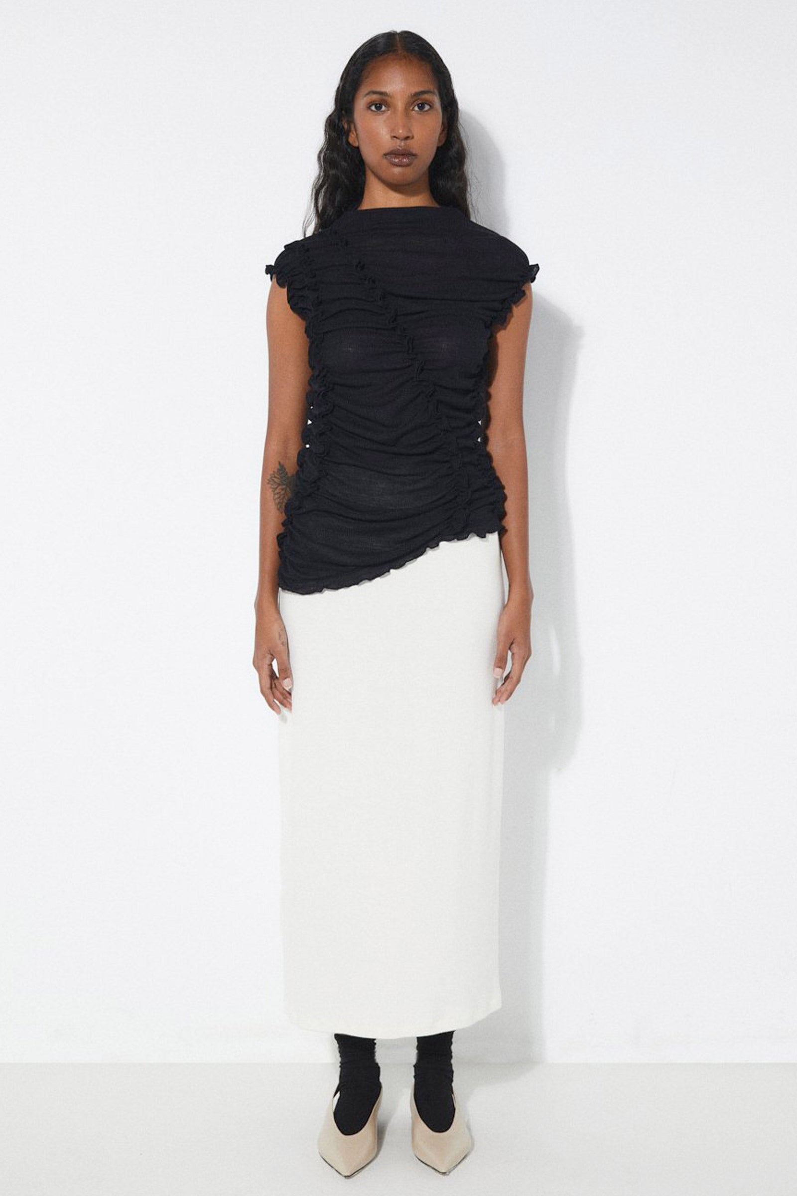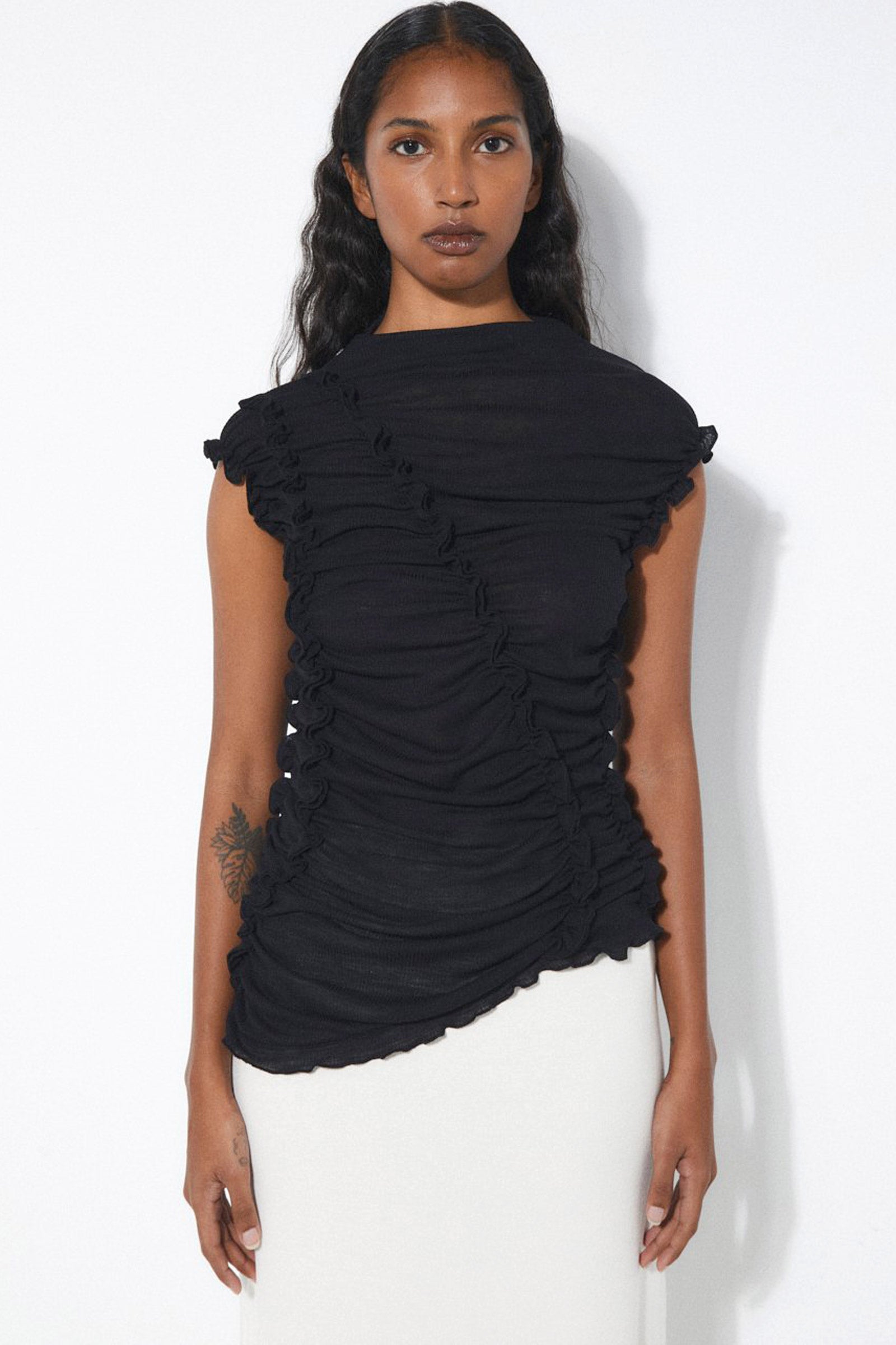 Cinched and ruffled details