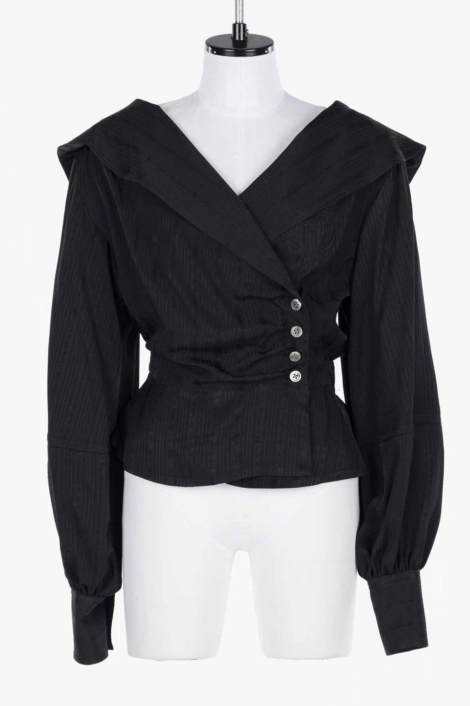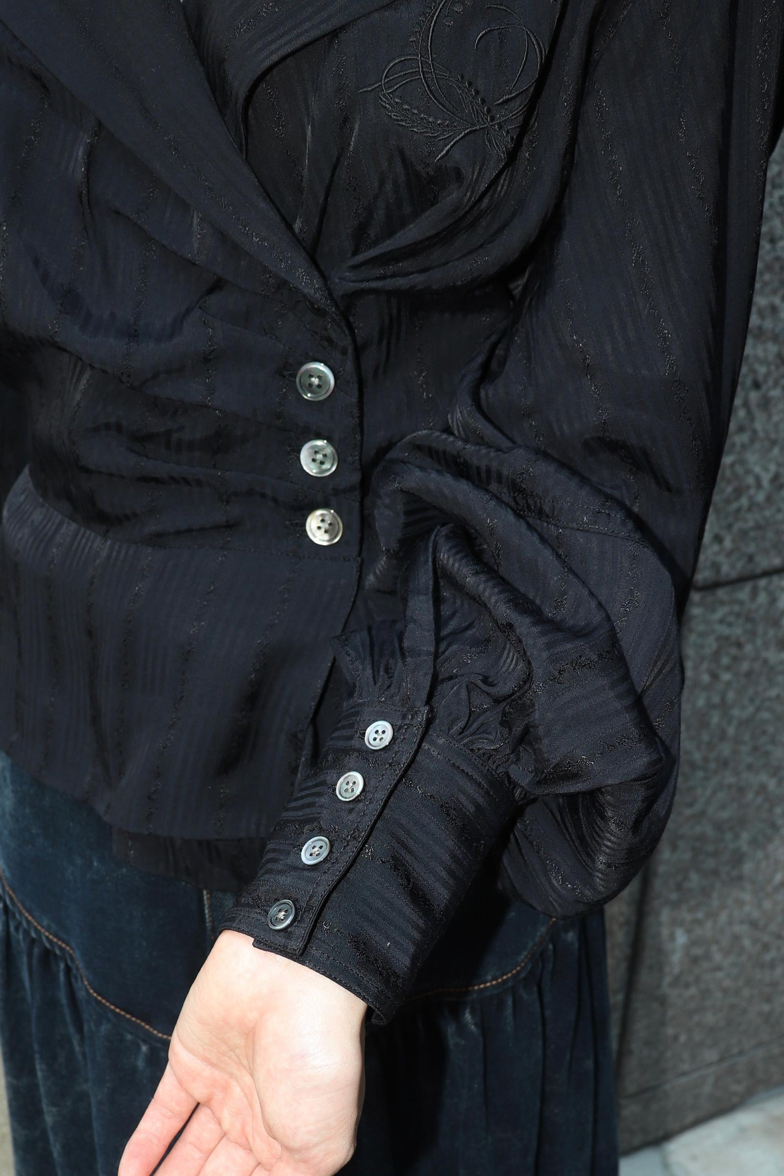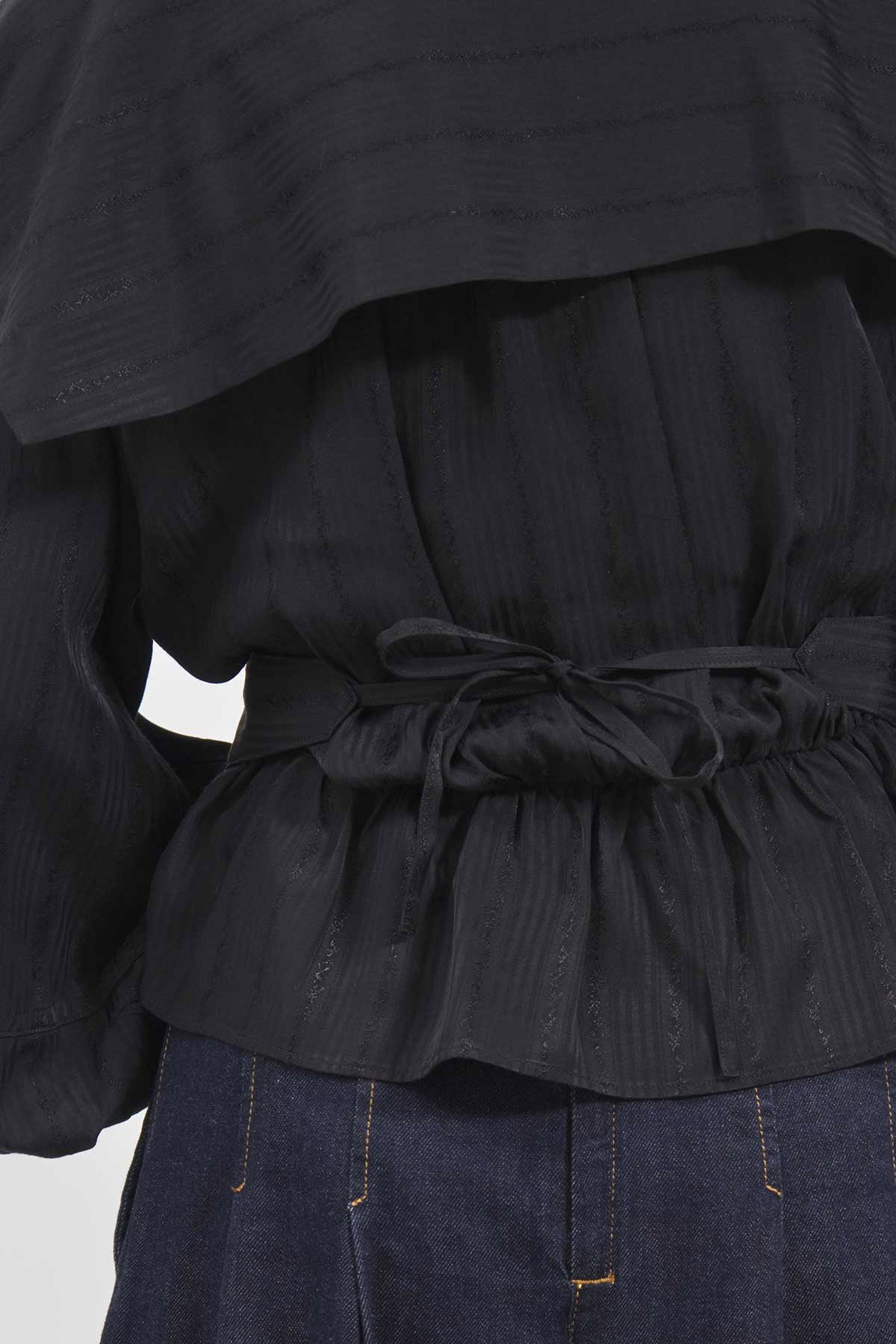 Black tone-on-tone rose jacquard and stripes blouse