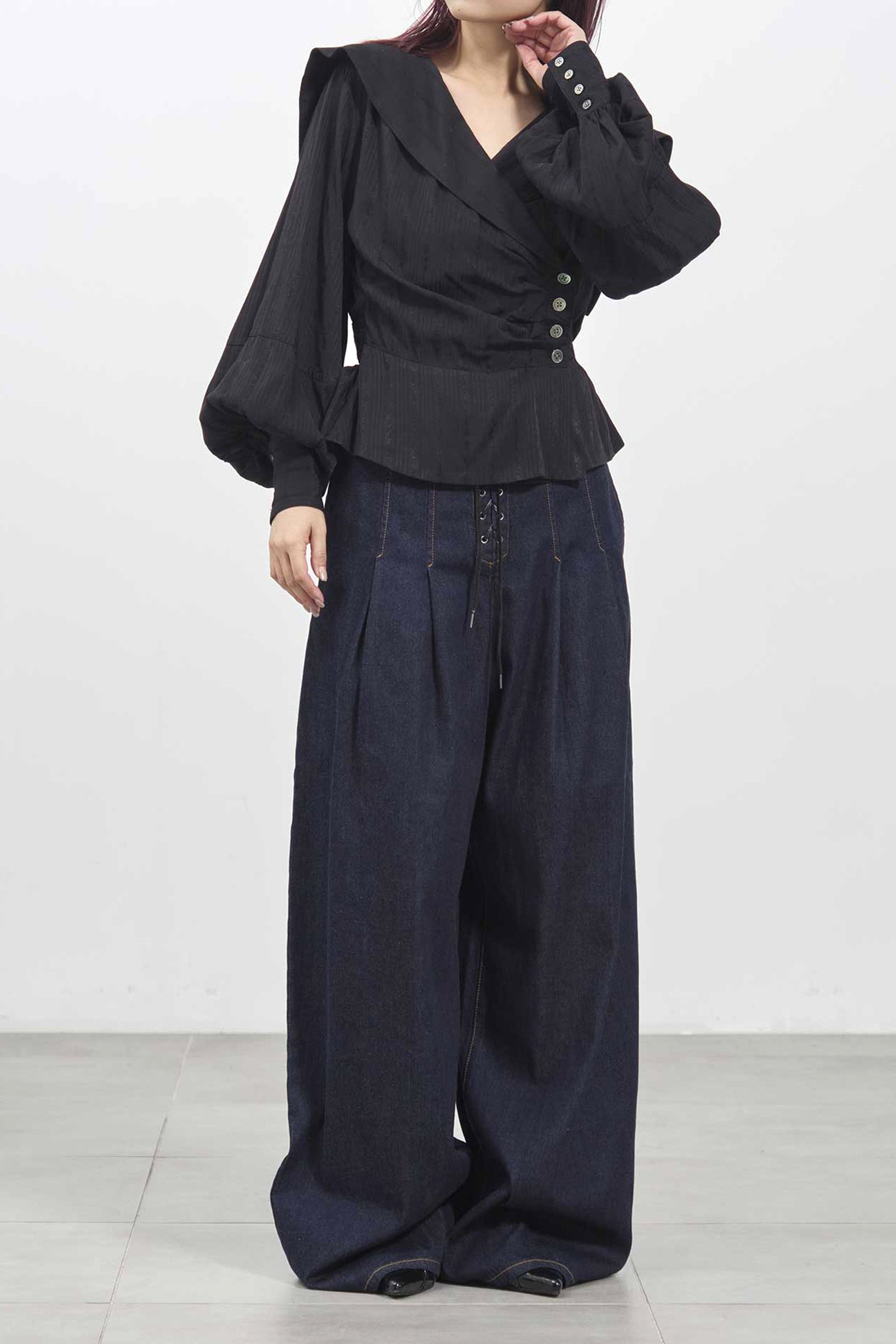 Voluminous long sleeves with four buttons at the cuffs