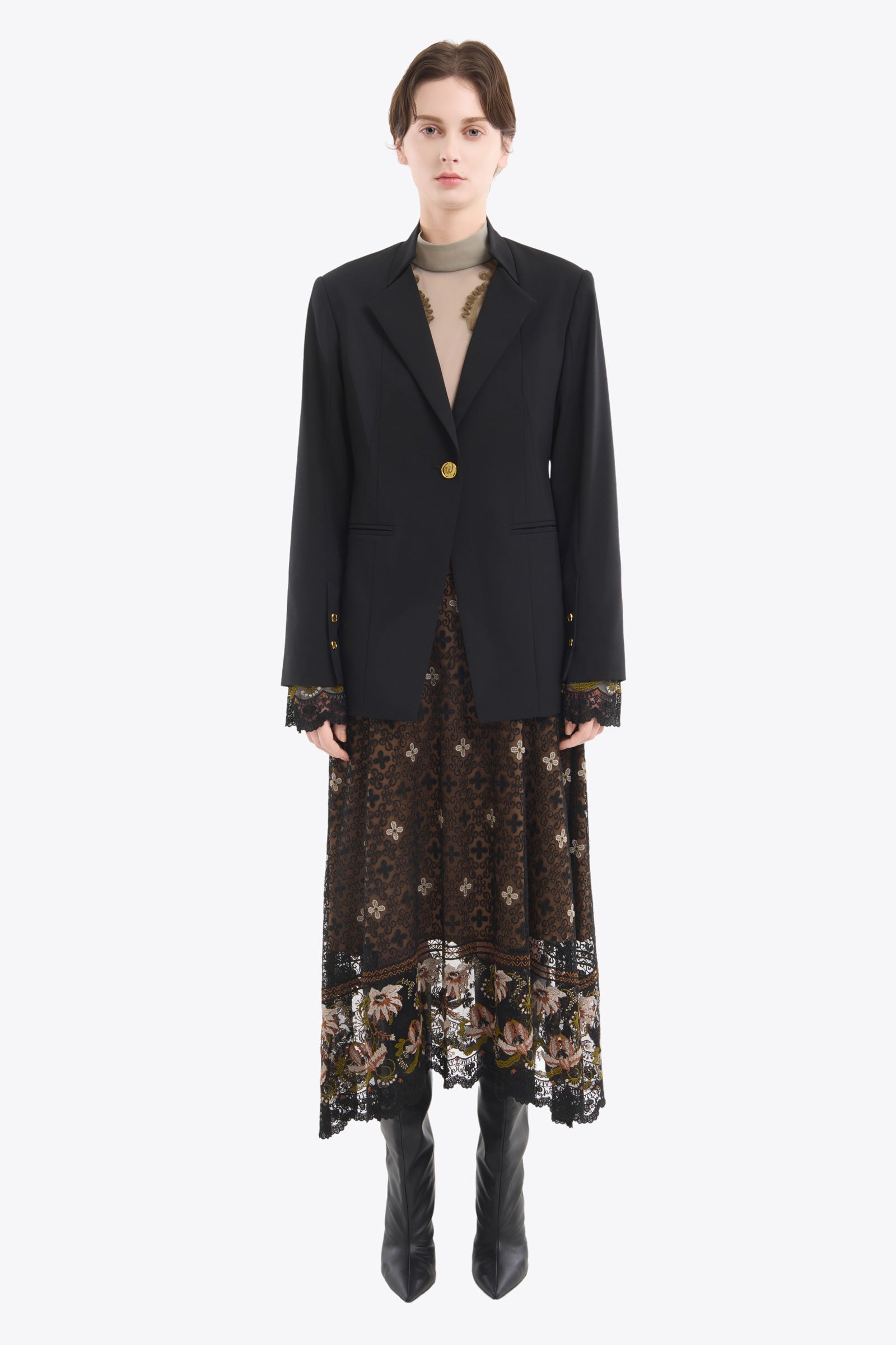 Main: 68%Polyester 32%Wool; Lace: 100%Nylon; Lining 100%Cupro