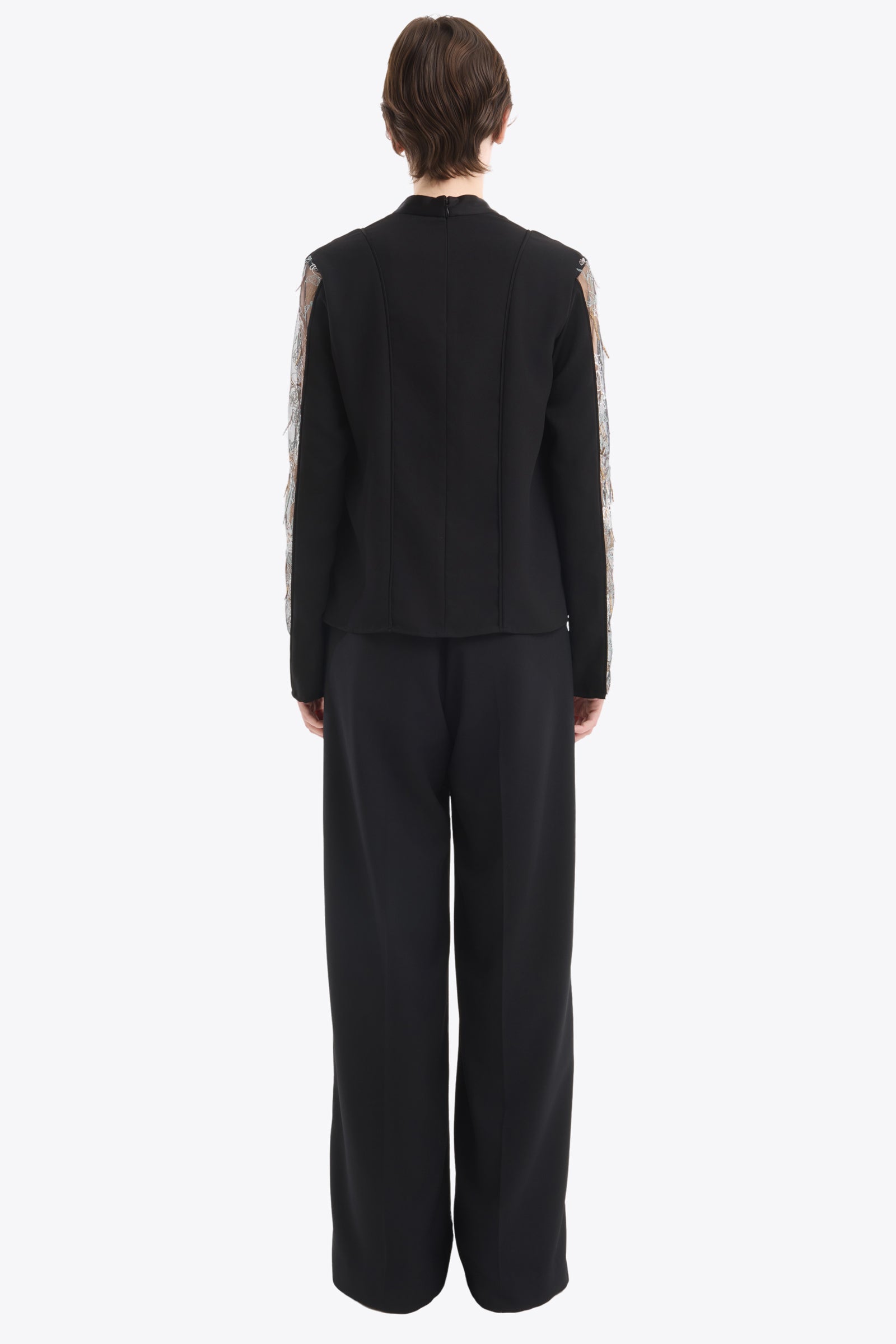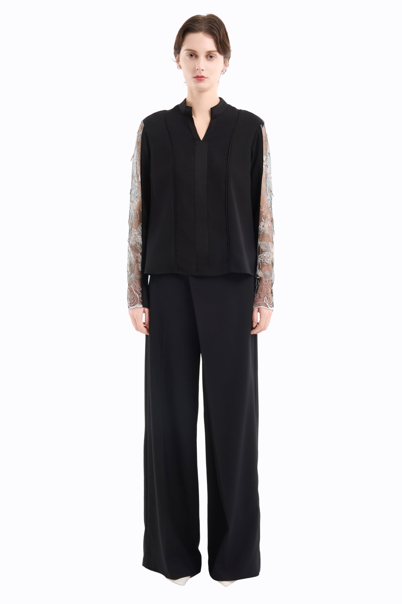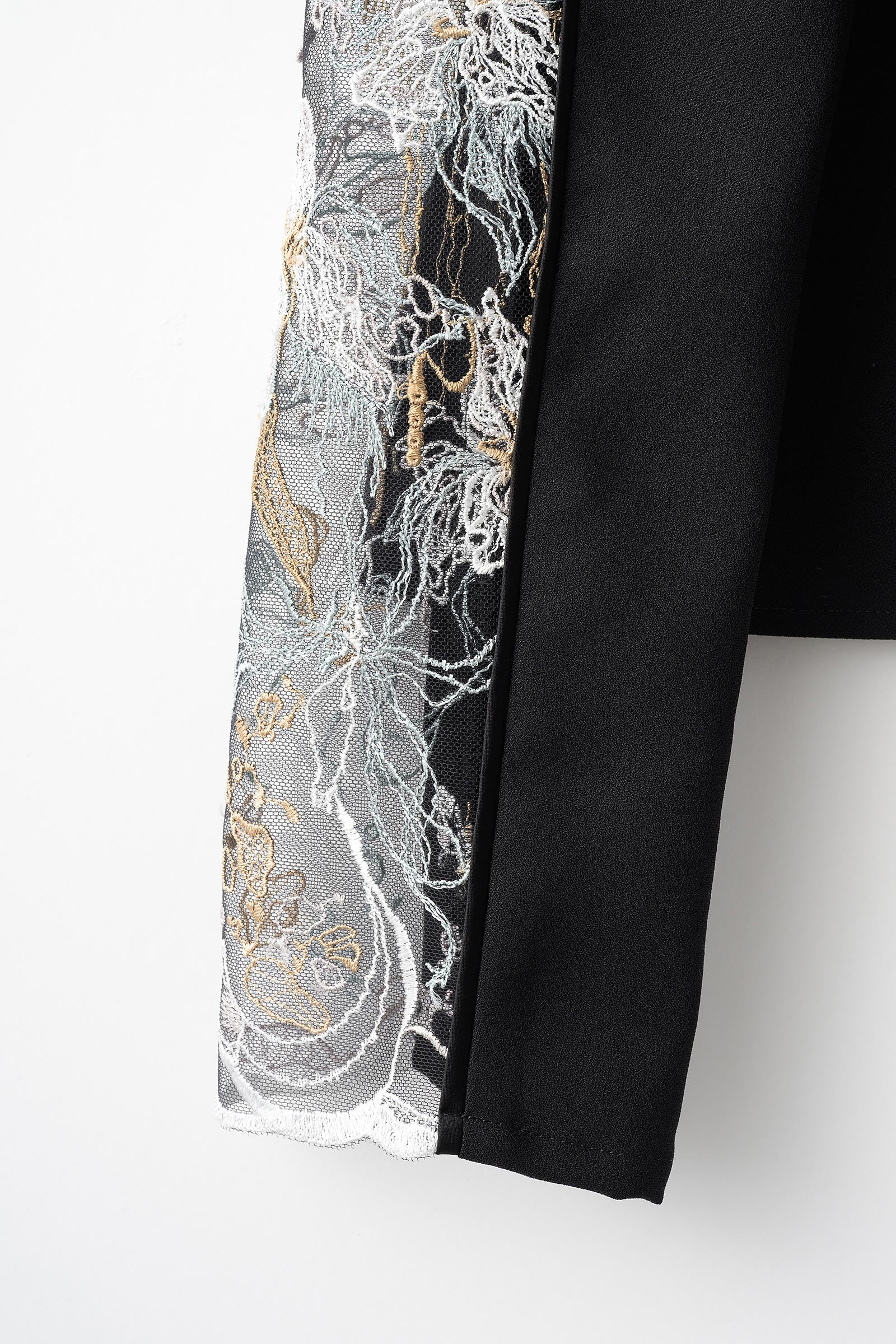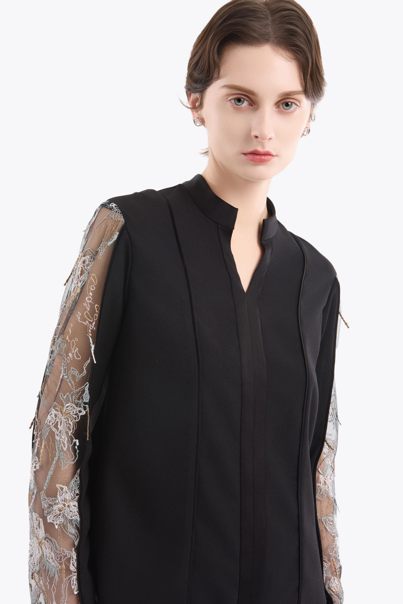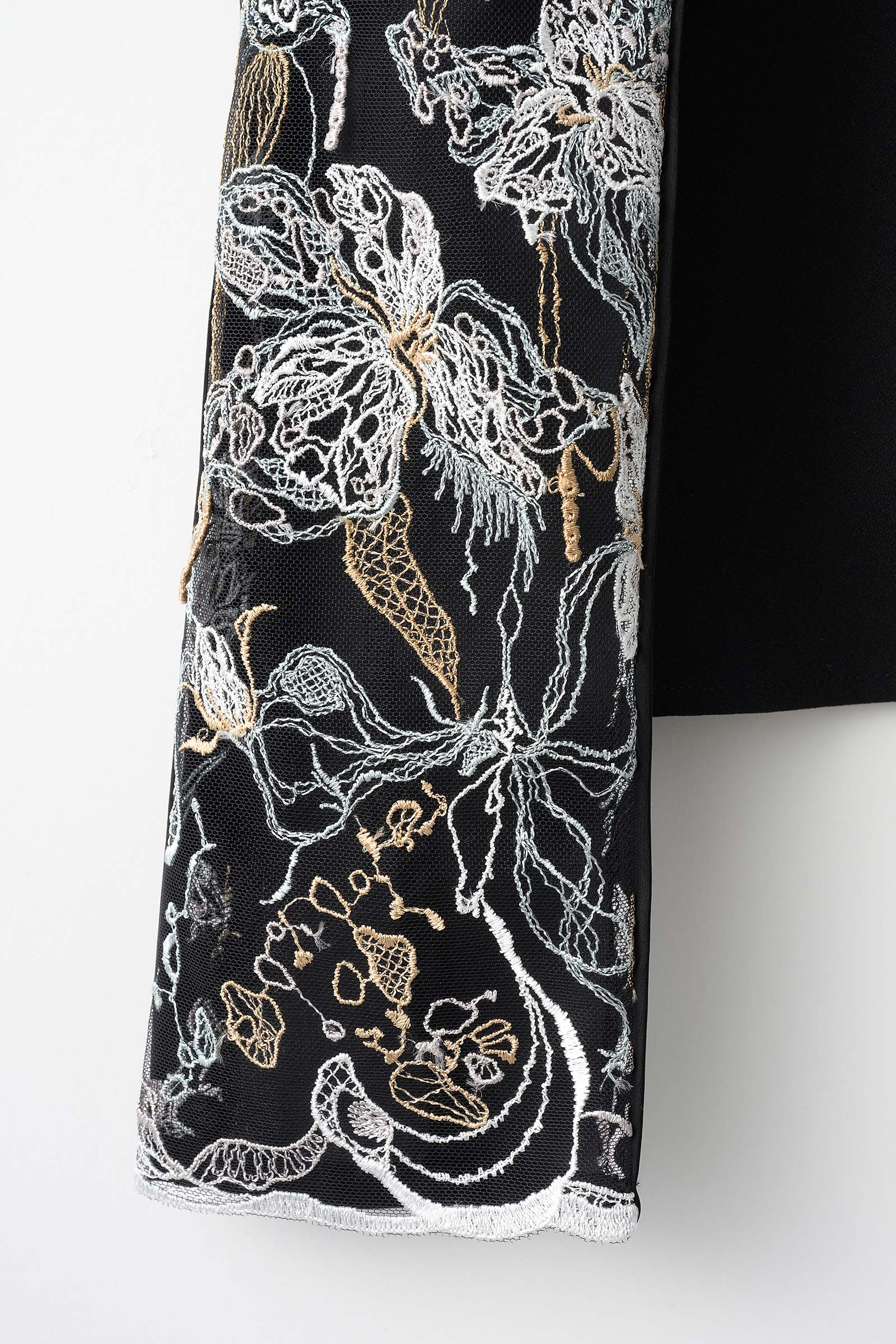 Fabric 1: 100%Polyester; Fabric 2: 86%Triacetate 14%Polyester; Lace: 100%Nylon
