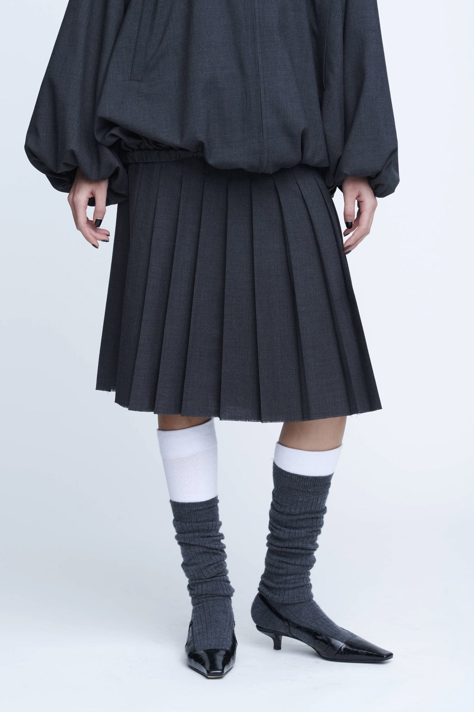 Wool Wrap Pleats Skirt