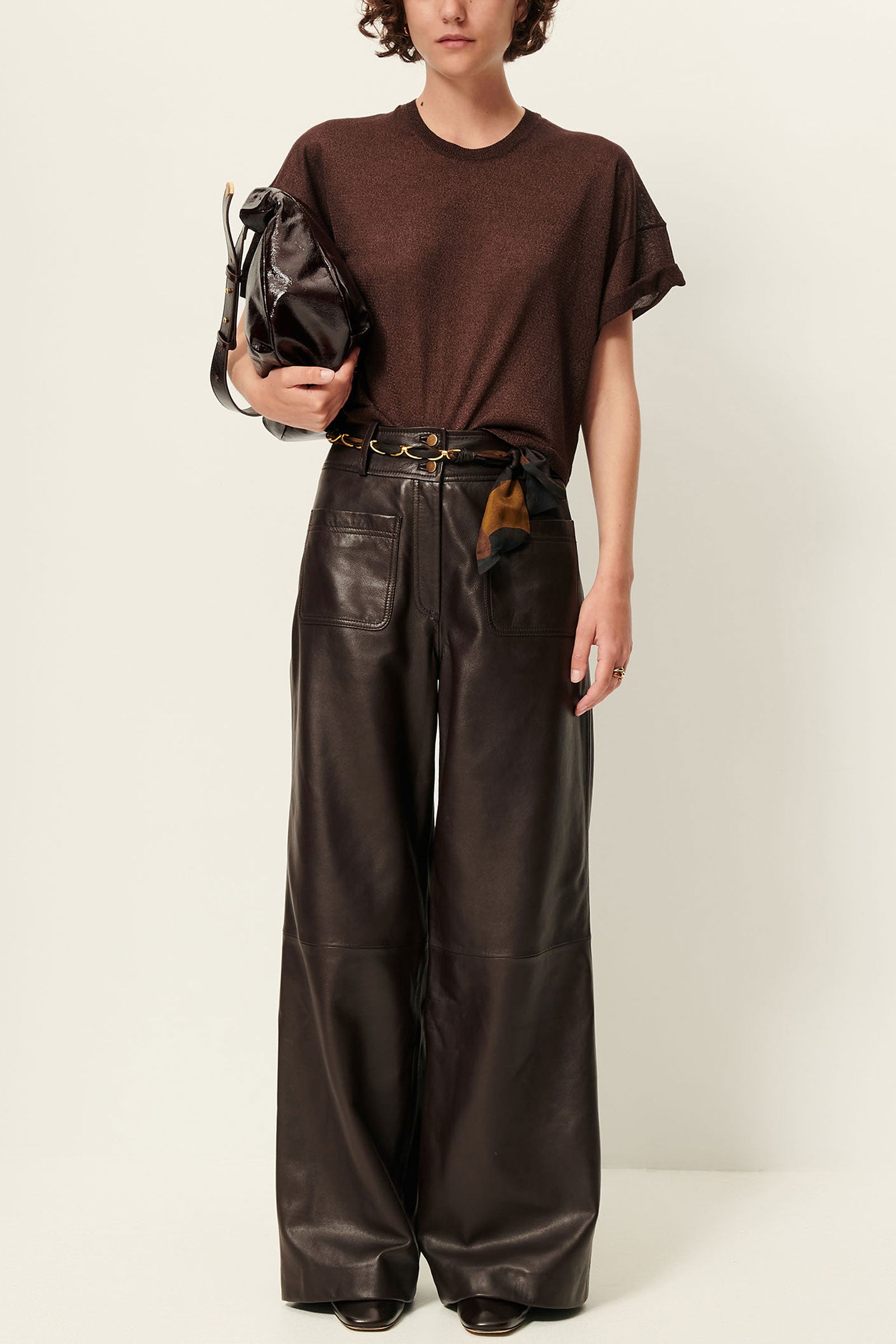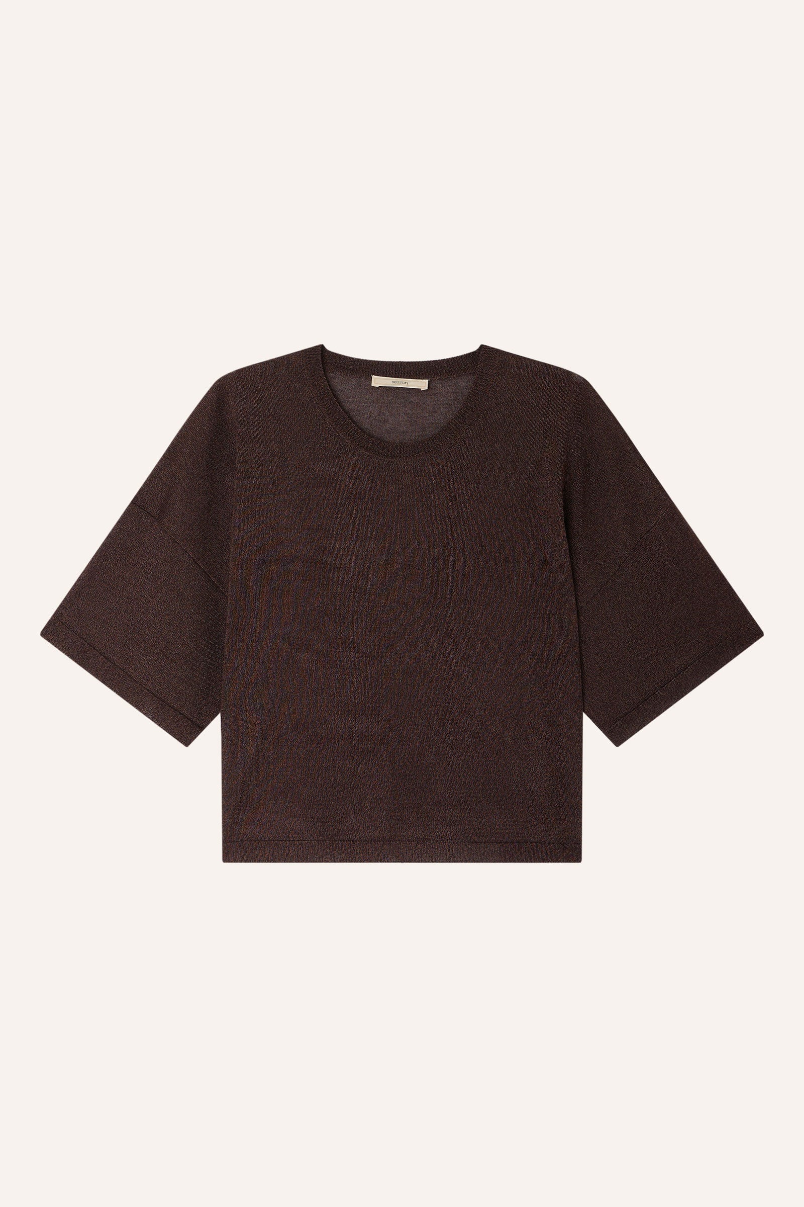 Brown shiny and lightweight knit T-shirt