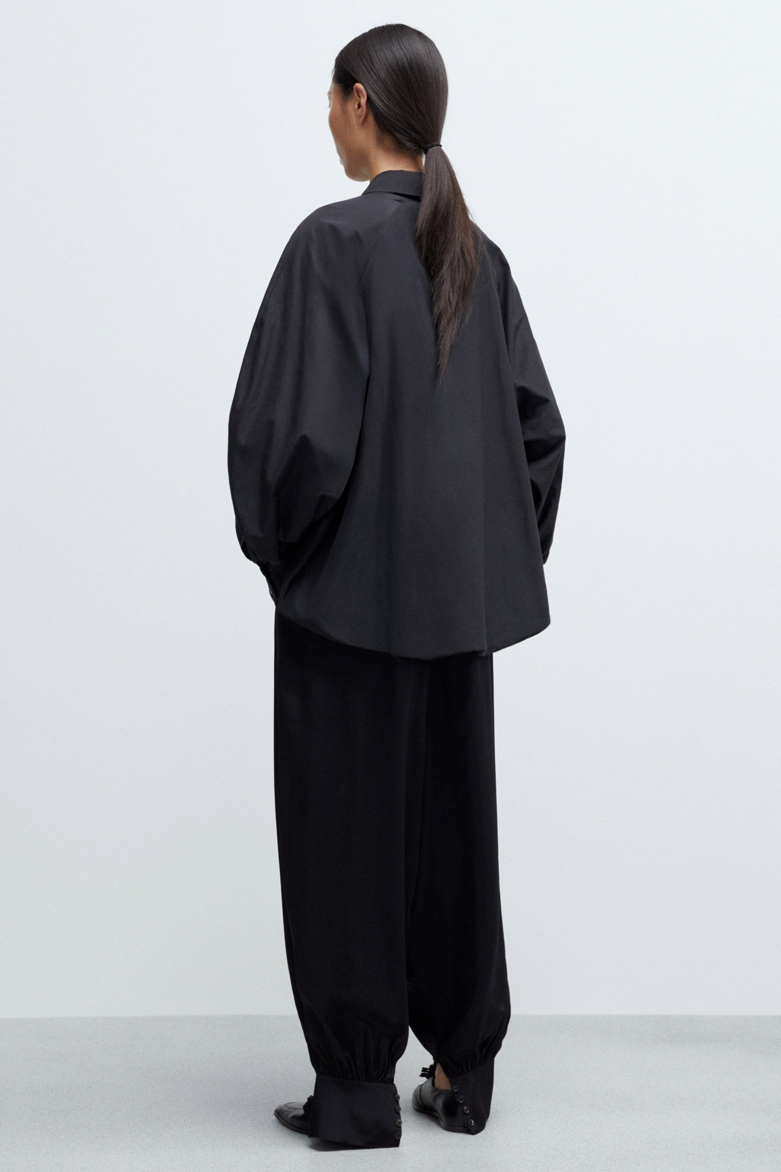 Black ultra-fluid and lightweight trousers