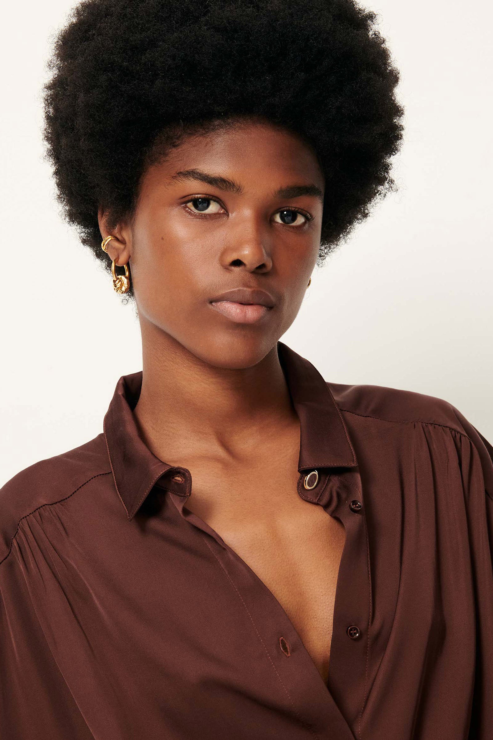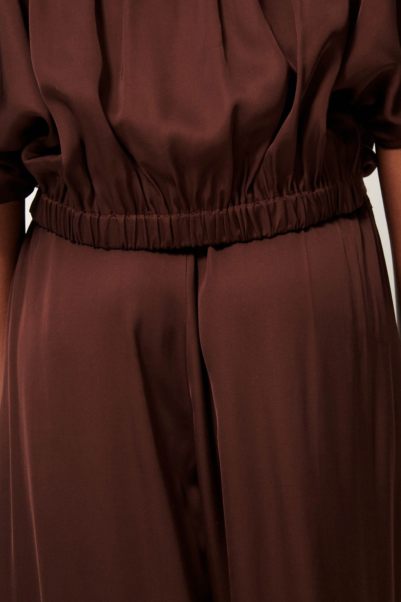 Brown fluid viscose satin blouse