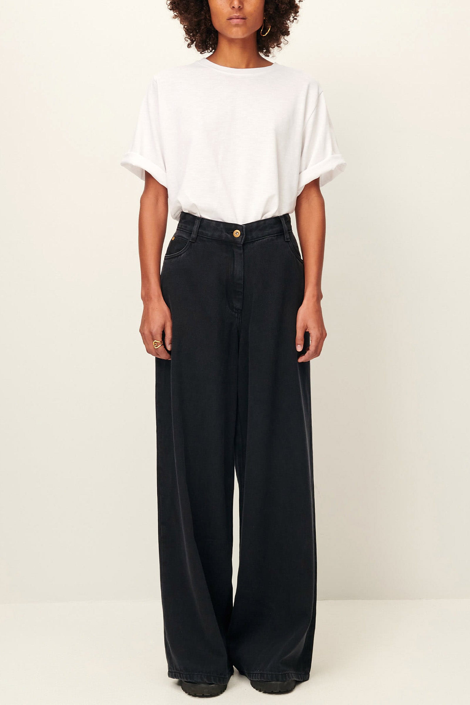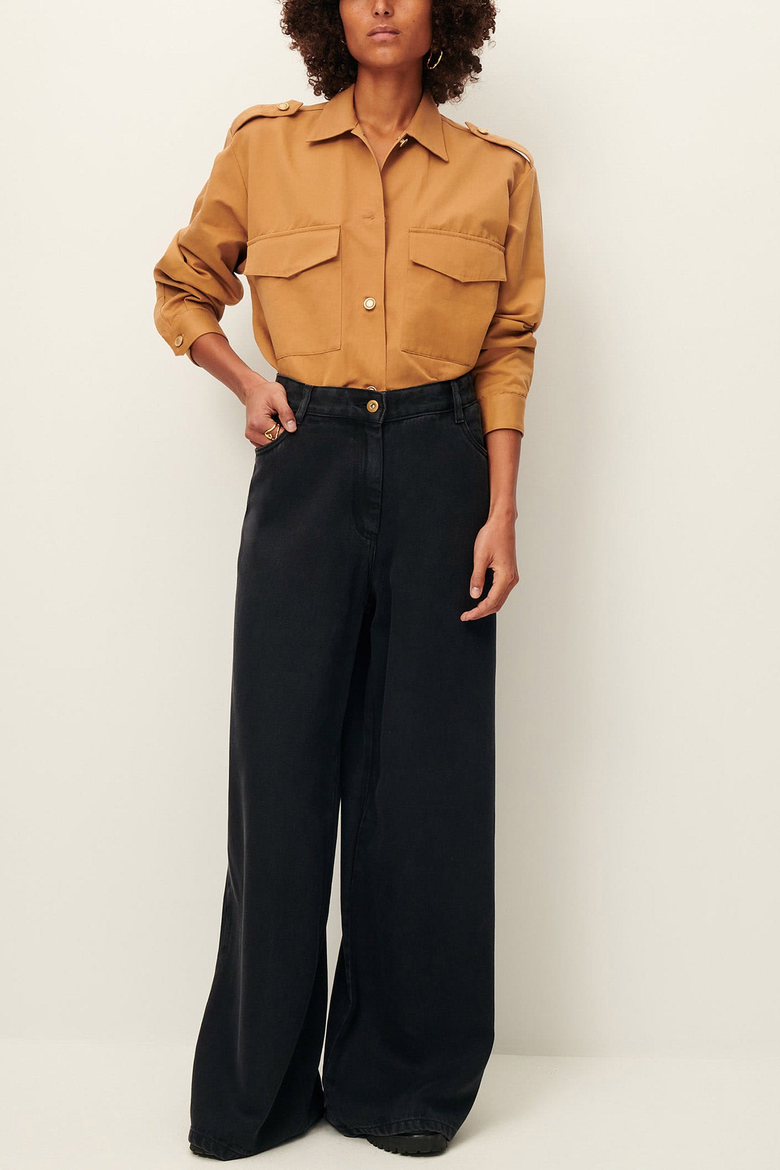 Slant pockets, coin pocket and patch pockets with double topstitching at the back